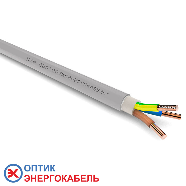 NYM – силовой кабель по немецким стандартам имеет токопроводящие медные жилы в изоляции из ПВХ и промежуточную оболочку из невулканизированной резиновой смеси, что обеспечивает круглую форму, повышает безопасность и увеличивает гибкость кабеля.
