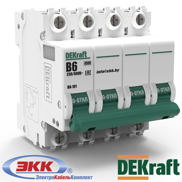 • Автоматический выключатель DEKraft ВА-101 B 4P 6A 11040DEK