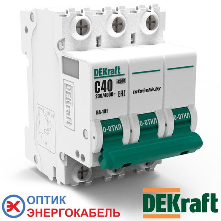 • Автоматический выключатель DEKraft ВА-101 C 3P 40A 11082DEK
