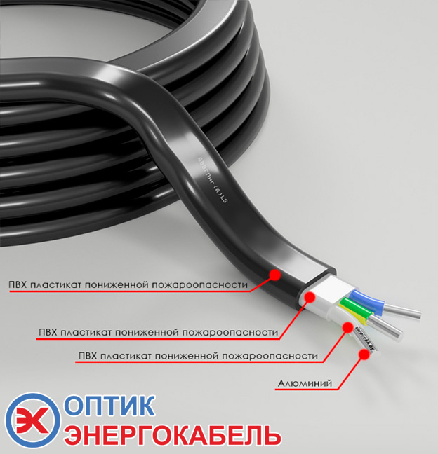 Кабели силовые АВВГПнг(А)-LS алюминиевые в негорючем исполнении, с пониженным газо- и дымовыделением. Жилы могут быть как одно- так и многожильные. Кабель с индексом П (плоский) бывают только сечением до 6мм². Общая изоляция кабеля выполнена из поливинилхлоридного пластиката черного цвета, а изоляция каждой жилы имеет свой цвет, что позволяет упростить монтаж.