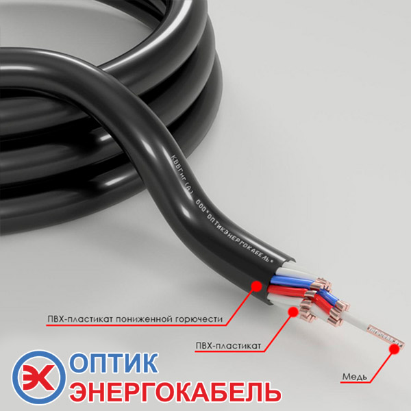 Контрольный кабель КВВГнг(А) — это кабель состоящий из медных жил, оболочки и изоляции выполненных из ПВХ пластикатов пониженной горючести, который используется для групповой прокладки в линиях кабельных сооружений и открытых электроустановках.
