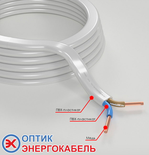 Провод ШВВП – это соединительный шнур из гибких параллельных медных жил в ПВХ изоляции, который служит для подачи напряжения питания для светильников, бытовой техники, прочих бытовых приборов на напряжение до 380 В переменного тока.